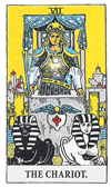 When the chariot appears in a tarot reading, we ask how we are steering ourselves through life. Are we in the driver's seat? What inner conflicts are making our road difficult? How is our loyalty divided between parental influences and new relationships in our life? Are we adequately nourishing those for whom we are responsible? Are we being controlled against our will? How can we reseed our lives to end our spiritual famine and promote new growth?